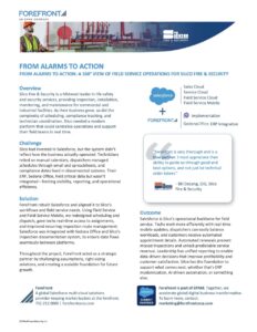 From Alarms To Action: A 360° View Of Field Service Operations For Silco Fire & Security View File Type: pdf File Size: 349 KB Categories: Case Study Tags: Salesforce Field Service, Salesforce Field Service Mobile, Salesforce Sales Cloud, Salesforce Service Cloud kgutierrez@forefrontcorp.com2025-12-15T21:43:59+00:00